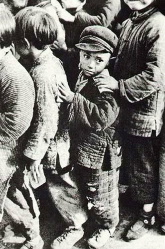 《苦难的眼睛》1948年冬至1949年春,摄影大师布列松先后采访了中国的北平、南京、上海等城市,这张愁容满面的男孩子照片,是在南京市民买米的队伍中抓拍下来的。照片揭示了中国人民的悲惨和苦难。