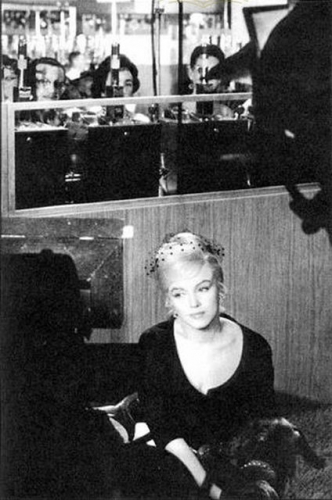 《玛丽莲-梦露》此照之所摄, 是60年代美国好莱坞著名女明星玛丽莲.梦露。虽然布列松是在梦露不经意时抓拍了此照,但从这一凝固的瞬间里,还是抓住了模特的天生丽质和娴雅风度。