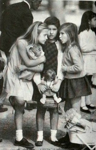 《小大人》照片中三位美国女孩在西班牙塞维尔某条小巷“晤谈”。这张照片在一段时间内成为了美国销售第二的明信片。