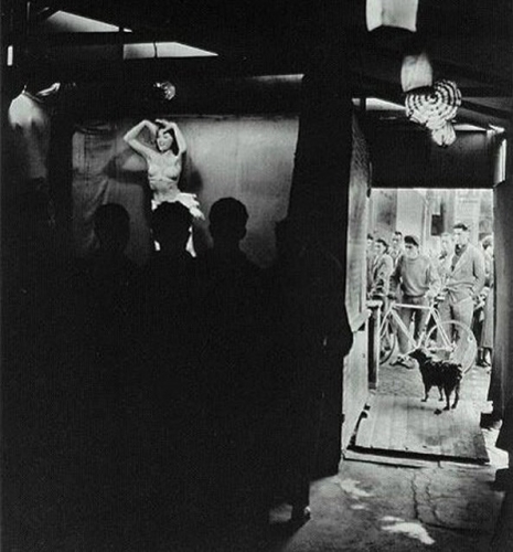 《旋转的温达》这张照片是杜瓦诺斯1953年在一条大街上拍的。这期间,他拍摄大量温达的照片。温达在她父母的马戏团工作,实际上她是一个脱衣舞表演者,被称作“激情的蜗牛”。对“温达”的着迷来源于她的表演所带来的强烈对比:表演场里黑乎乎的,条件极其简陋,连街头苦力都可以进去看她的表演。外面则十分明亮。这明确地显示了公共场所和隐秘场所的对比。