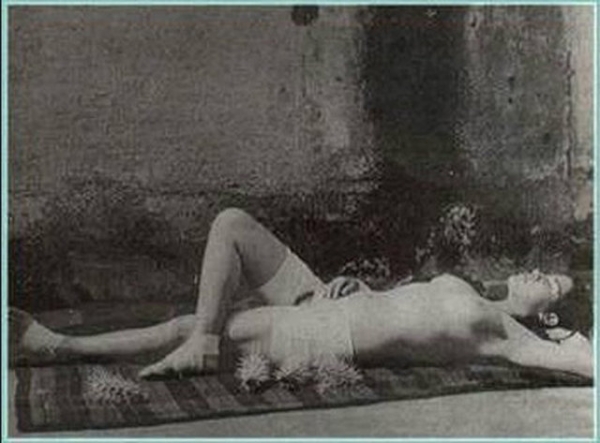 《受伤的女子》这幅照片是摄影史上的经典之作。 一个受伤而只绑绷带裸睡的女子, 是那么安详而不带一丝猬亵。