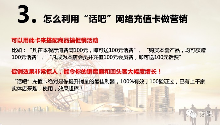 2、商铺促销:卖多少送等额话费,促销利器,为商家打造超强店铺形象。
