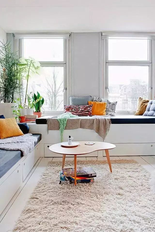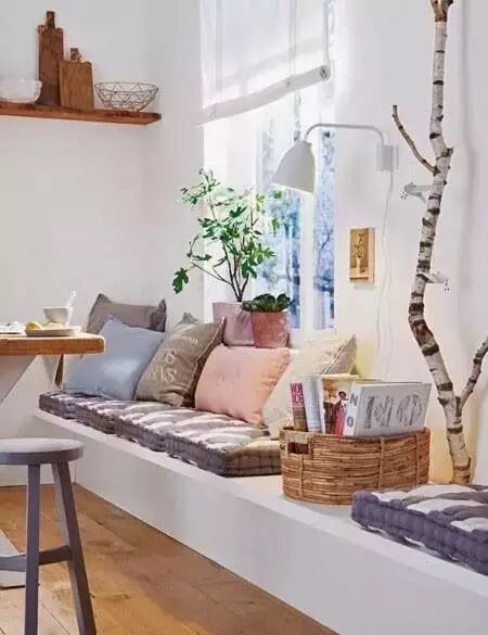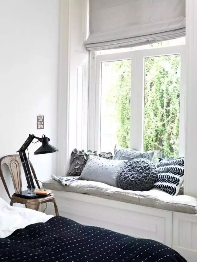其实飘窗的设计不一定长就是最舒适的,即使你的窗户很小,也可以设计一张坐垫!