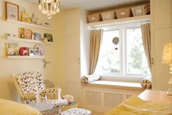 飘窗的墙面还可设置成置物架,放收纳品、书籍或工艺品,美观又实用。