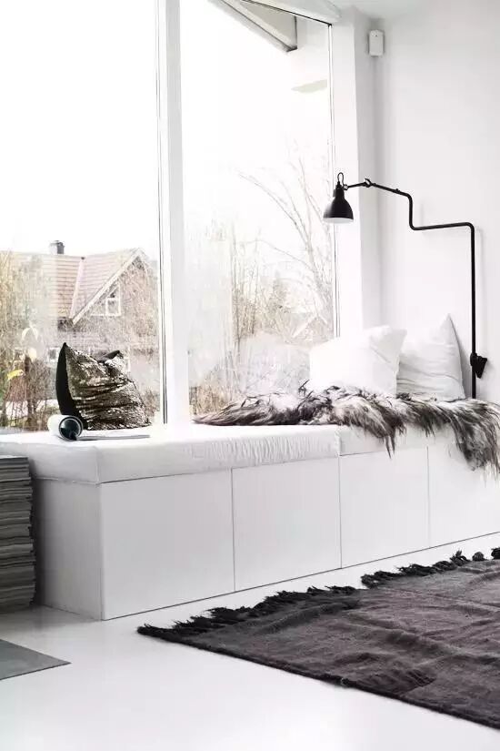 不过好像只有西方的飘窗喜欢作为很不错的观景台。躺在窗台上,上面放上两个靠垫,或坐或卧,白天看车水马龙,晚上看满天星斗。利用飘窗的另一方面是其充足的光照。