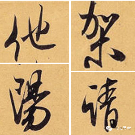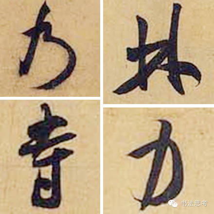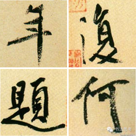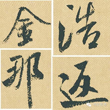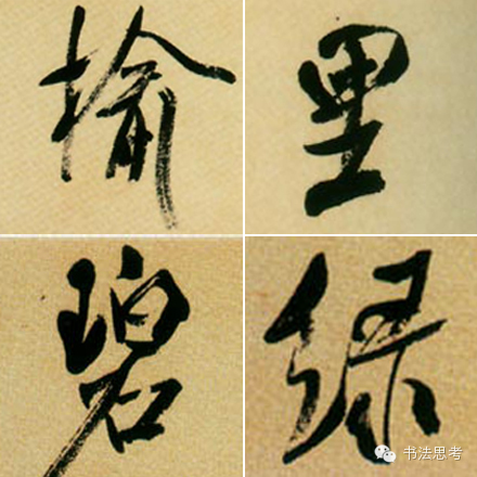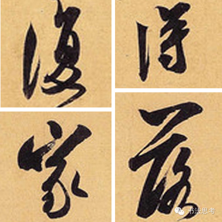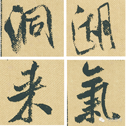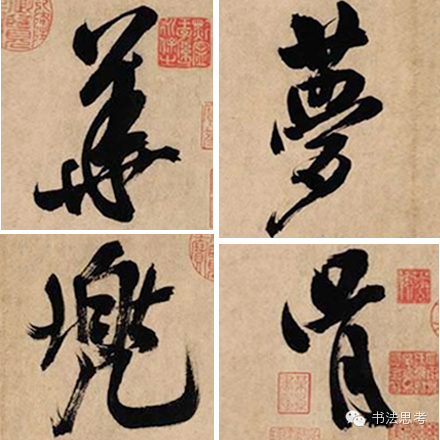 米芾书法,单字险奇,而在同一幅作品中,单字与单字的对比与气势搭配,也十分抢眼,我们下面就以“四字”组合的形式,给大家展示。首先看到“中华第一美帖”之《蜀素贴》单字: