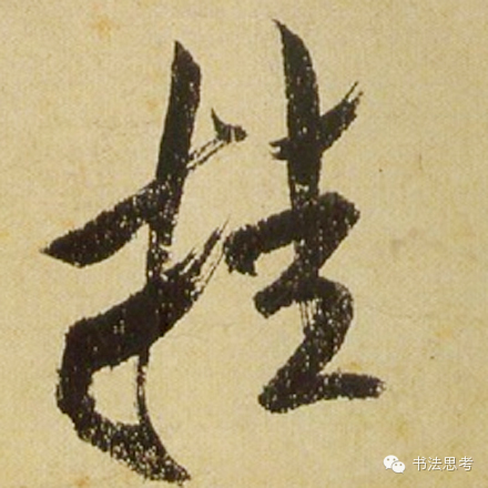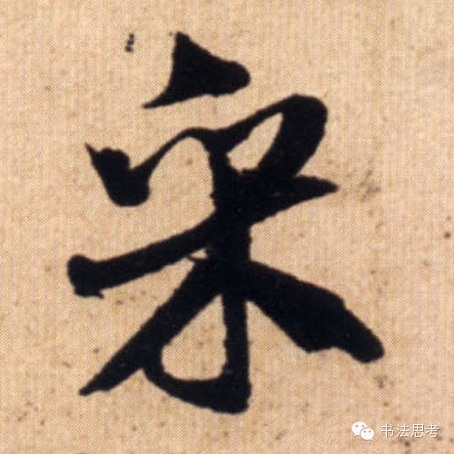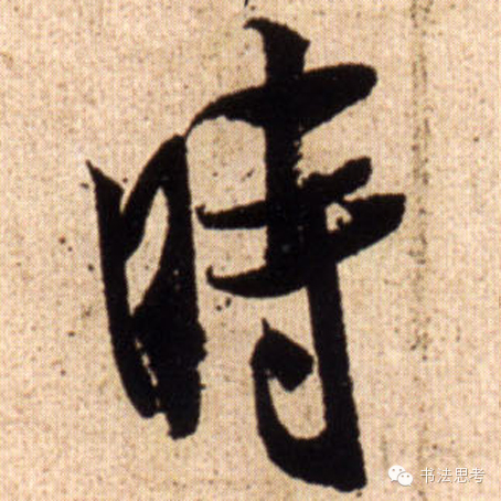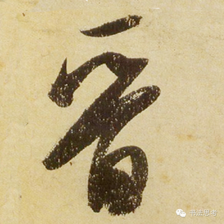 我们看到,米芾的捺笔变化也很多,下笔的着重点有时在起笔,有时在落笔,有时却在一笔的中间,对于较长的横画还有一波三折,如《值雨帖》的“数”: