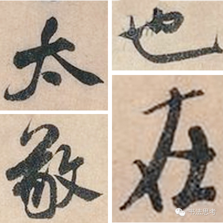 斑驳字迹,信手“涂写”的神韵。在《珊瑚帖》中,字态极为奇异超迈,随意而书,神韵自然,神采更趋飞扬,形式感也更具意趣。
