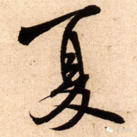 米芾行笔要求在变化中达到统一,把裹与藏、肥与瘦、疏与密、简与繁等对立因素融合起来,也就是“骨筋、皮肉、脂泽、风神俱全,犹如一佳士也”。我们看到上面的“半”和“夏”字的横划骨和肉的体现: