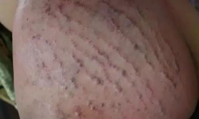以上两张图为同一患者。医院检查说只有糖尿病和高血压,用药物控制多年,但身体越来越糟糕。请大家记住:凡听到这两个病名,不用多问,其五脏六腑全部淤堵!尤其膀胱经、肾经、肝经、脾经。这时病名还有何意义?为什么出这种绳索状痧?因为她长期服各种药物,请关注公号脉脉养生一堆药在体内继续发酵、分泌就在不同经络、血管形成不同颗粒、结节,拍出来就是这种痧。很多人靠药物控制痛苦地活着,而拍打拉筋是后不再吃药,让人健康地多活二三十年。