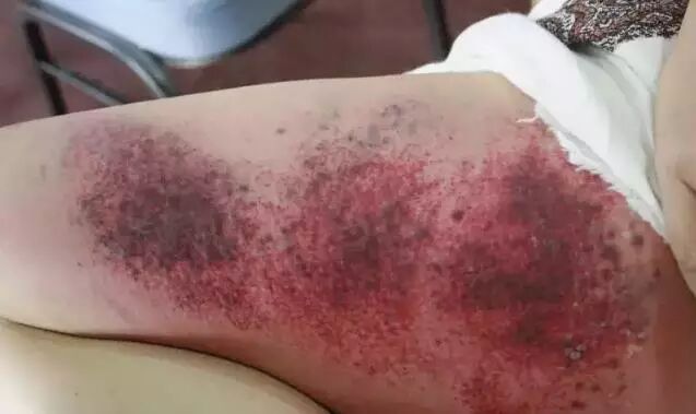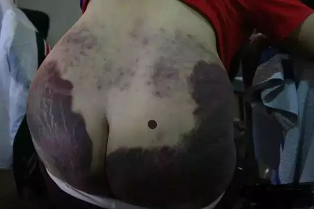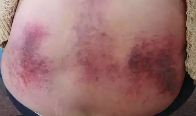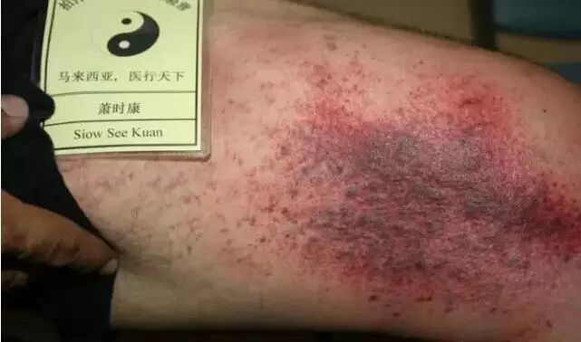 此人臀部来体验营之前已经几次拍出这种跟墨汁一样黑的痧,到体验营仍然一拍就出。问她什么病?答曰没什么病,就是长期腿痛、肥胖。天哪!这还不是病!结果腿痛大大减轻,但最令她开心的是屁股小了两圈,裤子都得换。事实上,其膀胱经、胆经、肝经、肾经、心经、肺经等等统统都不同程度淤堵,却自以为没病!难道非得进医院才算有病?