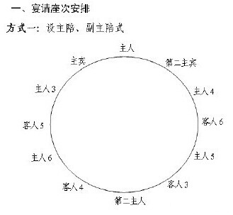 【座次】古时官场座次尊卑有别,十分严格。官高为尊居上位,官低为卑处下位。古人尚右,以右为尊,“左迁”即表示贬官。《廉颇蔺相如列传》:“以相如功大,拜为上卿,位在廉颇之右。”古代建筑通常是堂室结构,前堂后室。在堂上举行的礼节活动是南向为尊。皇帝聚会群臣,他的座位一定是坐北向南的。因此,古人常把称王称帝叫做“南面”,称臣叫做“北面”。室东西长而南北窄,因此室内最尊的座次是坐西面东,其次是坐北向南,再次是坐南面北,最卑是坐东面西。《鸿门宴》中有这样几句:“项王、项伯东向坐,亚父南向坐,……沛公北向坐,张良西向侍。”项王座次最尊,张良座次最卑。