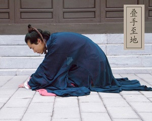 最隆重的跪拜礼,属于臣拜君,子拜父,学生拜老师以及拜天、拜神、拜庙之礼。