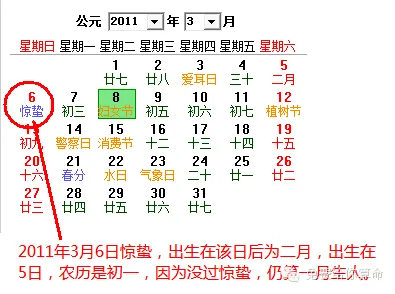2、要搞清楚自己是那个月出生的。很多人知道自己的农历生月,但古代算命术可不看农历,而看节令。例如你生在农历正月初三,一查当年节气,还没有到立春,那你只能算十二月生人。正月立春,二月惊蛰,三月清明,四月立夏,五月芒种,六月小暑,七月立秋,八月白露,九月寒露,十月立冬,十一月大雪,十二月小寒。一般而言,每个交节都在公历月初的4—8日左右。只要你不是出生在公历月份的这个时间段内,即可直接用农历月份,否者最好查一下当年的节气。