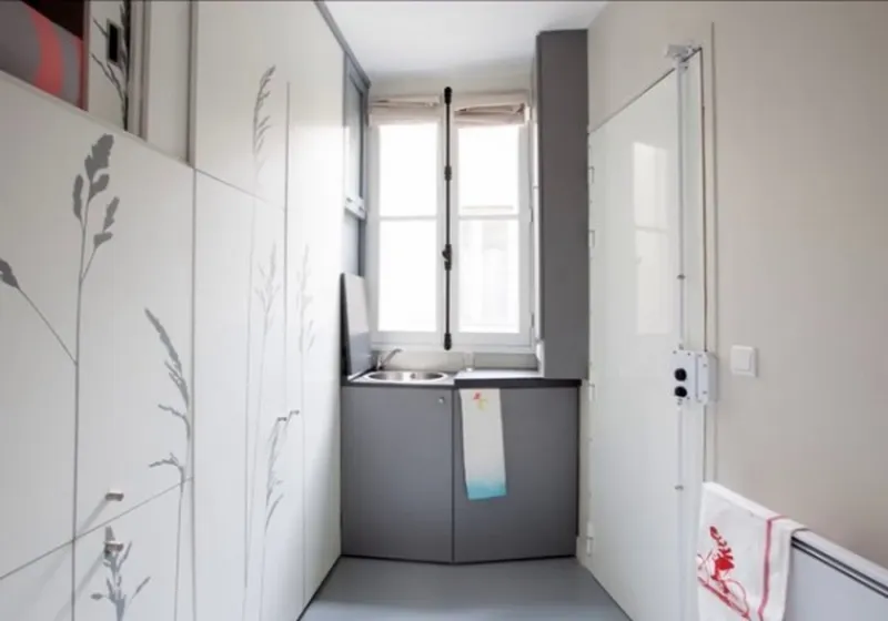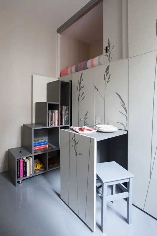在巴黎,就有一个这样大小的公寓。公寓小巧精致,由来自中国的建筑公司Kitoko工作室改造的。