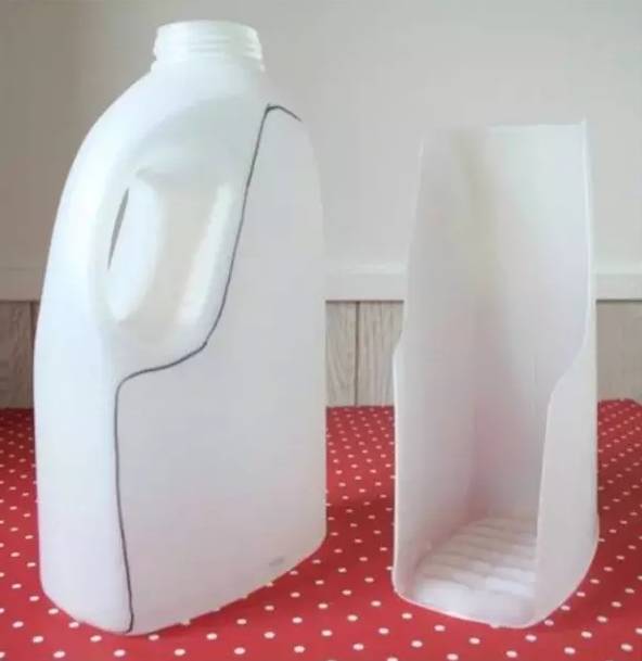 不只是牛奶瓶,洗衣液的大瓶子也可以哦,或者花生油的瓶子也是不错的!
