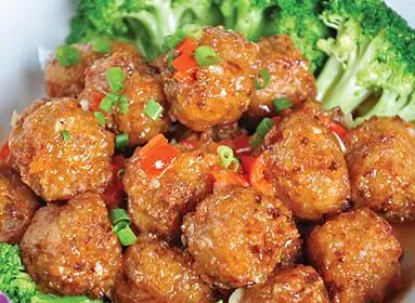 5、用手把调好的馅挤成一个个原形,放入油锅。