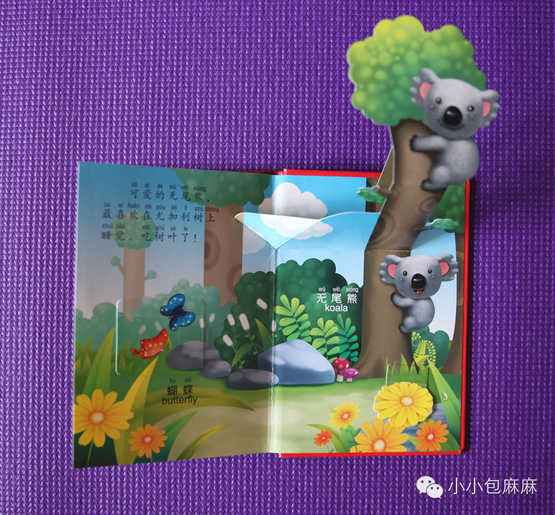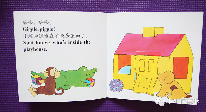 色彩显眼柔和,中英文相结合,可培养语感,翻翻书有小伏笔,小惊喜,也可以循序渐进,慢慢掀开~这种有互动的书,哥哥1岁多的时候特别喜欢,很多页都被他撕烂了,证明读的很成功哈~