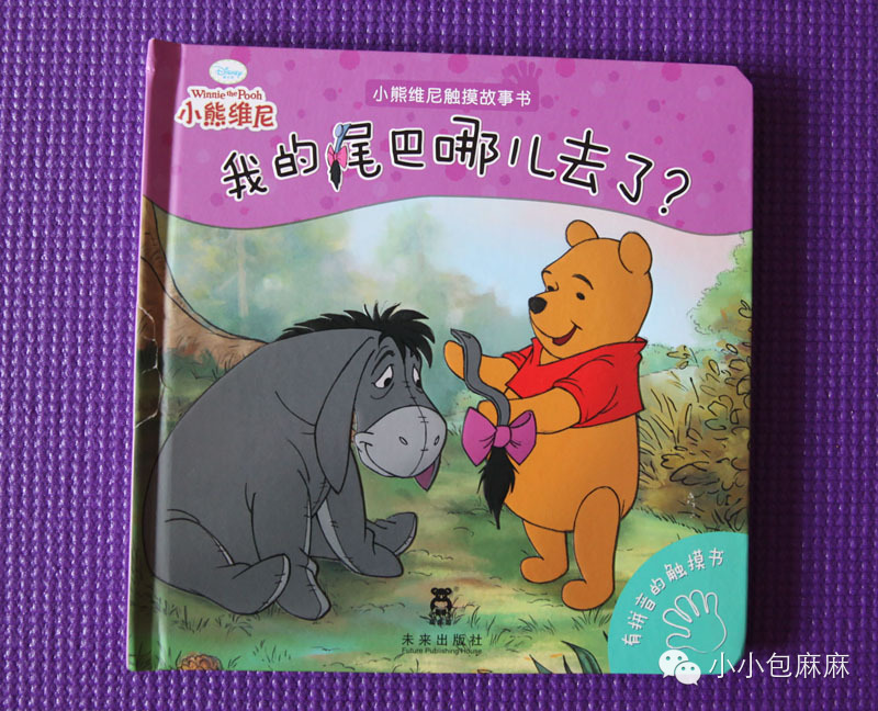 宝宝早期的认知是从感官开始的,小熊维尼触摸书就是这样一本可以买来用于告诉宝宝感官常识的书。书里有很多用特殊材质做出来的触摸区,包子哥哥小时候1岁左右最喜欢摸小熊维尼的蜂蜜了,粘粘的,这本书反复讲了十几遍。