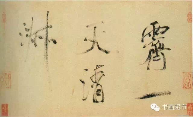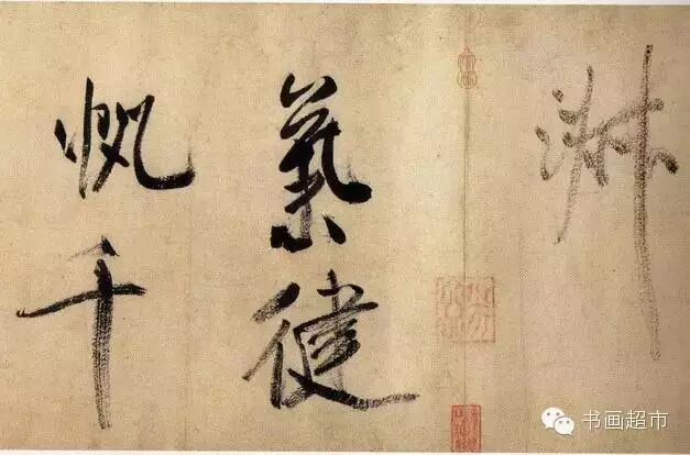 米芾尝自称其书为“刷字”,这一点在此帖的大字中表现得比较明显。可见本帖轻重缓急,节奏感极强, 用墨则干湿浓淡,浑然一体,得天成之趣。