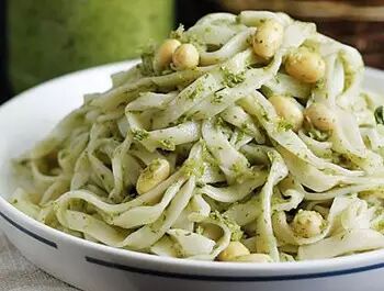 3. 面条煮熟捞出,在凉水中过凉,放入蒜泥、香油、香椿酱、黄豆、生抽拌匀即可。