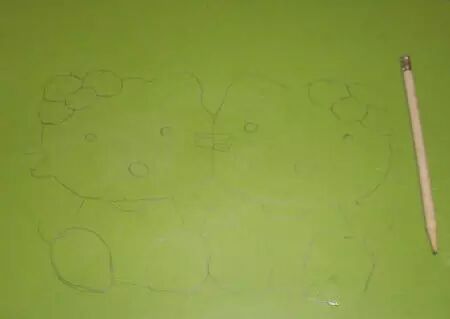 二、制作过程:女儿先用铅笔把想要制作的KIT猫勾线一遍,之后豆子的粘贴就以此为轮廓。