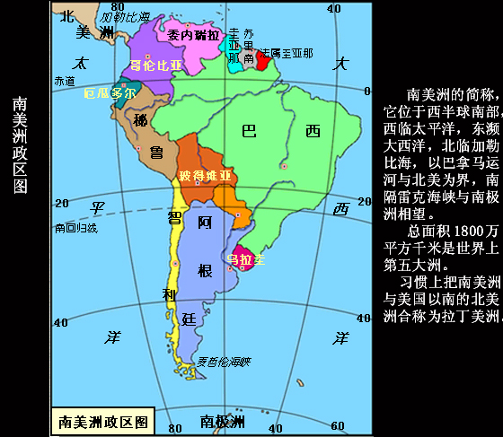 东部:巴西(1个) 南部:智利、阿根廷、乌拉圭、巴拉圭(4个)