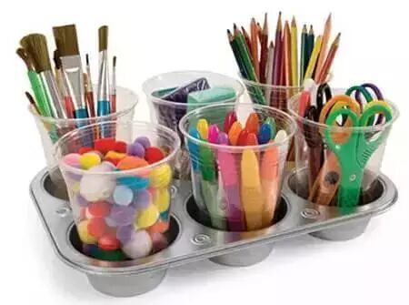 6用塑料杯就可以方便分类剪刀、彩色铅笔、水彩笔之类的文具了,还美得像艺术品一样!