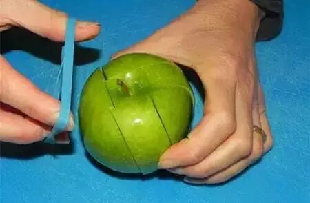 3切好的苹果容易氧化变色,用橡皮筋绑着就可以啦,还能随身带着,想吃就吃!