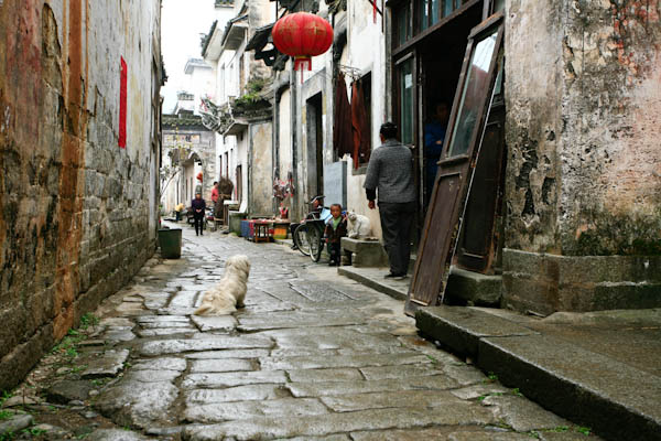 这是一座沉睡了千年的古镇,粉墙黛瓦写意着徽文化的余绪,鹅卵石的路面在街口或者岔道延伸着访古的诗情。一爿日杂商店,既是做生意的也是居家的,有着几分孩提时的记忆。卵石小路两旁,青砖黛瓦、马头墙林立,挑着担子的老汉来了又走,像是为了打破寂寥。经历岁月的打磨,这里不繁华、不雕凿,却真实逼人。