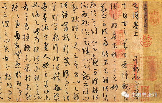 书幅的墨色协调很重要,谋篇布白当然不能忽视。古人虽然懂得墨法的重要,但是论述不多,因为他们学书工勤,学得了笔法,也随着学会了用墨,所以无须多讲。书法“中绝”后,人们因为学不好笔法,运笔不能与古人相比,所以就着重在字法和墨法上取巧创新。包世臣在《艺舟双揖》中说:“然而画法字法,本于笔,成于墨,则墨法尤书艺一大关键也。”沈曾植在《海日楼札丛》中说:“墨法古今之异…自宋以前,画家取笔法于书;元世以来,书家取墨法于画。”书家采取“墨分五色”的画法作书,就自然形成了浓墨、淡墨、枯墨、涨墨等妍蛋杂揉的情况。至于作书如何用墨,《书谱》不仅以巨篇墨迹作出了光辉的榜样,而且从正反两方面作出了精辟的阐释。所谓“巧涉丹青,功亏翰墨”,指明了作书用墨不符合书法的情况;而其“带燥方润,将浓遂枯”的至论,道破了书法用墨的诀窍。这就是说,只有以导顿疾涩、翻转耀抢的运笔方法,写出这样的墨色气韵,才能符合书法艺术的要求。