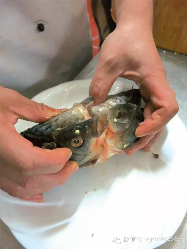 1、鲫鱼20条(约500克/条)宰杀治净,从腹部一剖为二,保持背部相连,去大骨,在鱼肉上打一字刀,冲去血水,沥干放入盆中,加西芹段600克、青尖椒段、红尖椒段、葱段各200克、姜块(拍破)100克、鲜香茅草2根,放入料酒100克、盐50克、鸡精40克、花椒25克、八角粉20克抓匀腌制3小时。