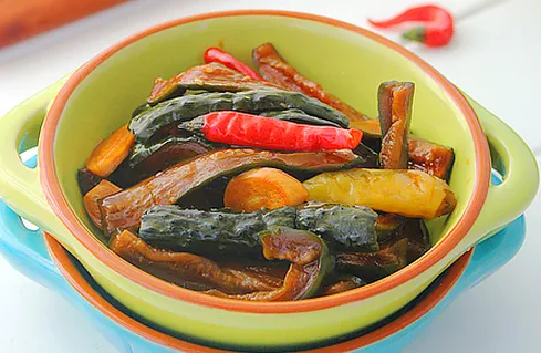 8、酱汁凉凉后,重新放入黄瓜条继续腌制5小时左右;