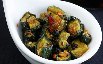制作:黄瓜 2根、食盐 1小勺、酱油 半小勺、醋 半小勺、辣椒(红,尖,干) 3个、植物油 适量、白糖 1小勺、蒜 3瓣、花椒 15粒