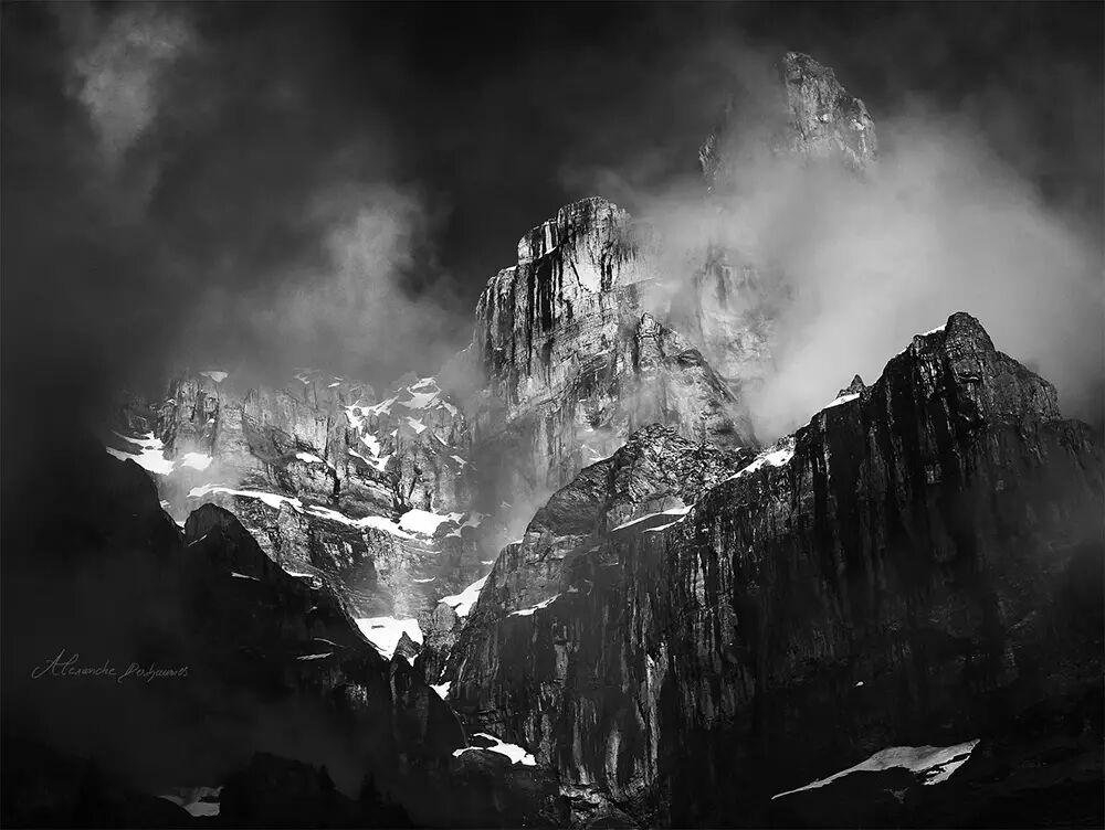 自学成才的法国摄影师Alexander Deschaumes在晚上有极高的人气,他的作品总是令人惊讶,不走寻常路的他总是去寻找那些无人之地或者再极端天气下出发,然后拍下这些令人叫绝的作品,世界绝对是公平的,你有多少付出,就有多少回报。Alexander Deschaumes通过他的付出,最终把这些美景呈现在我们面前,这组黑白作品极好的规避了色彩所带来的干扰,明暗和黑白的对比把山川本该有的那种大气磅礴展现的淋漓尽致。