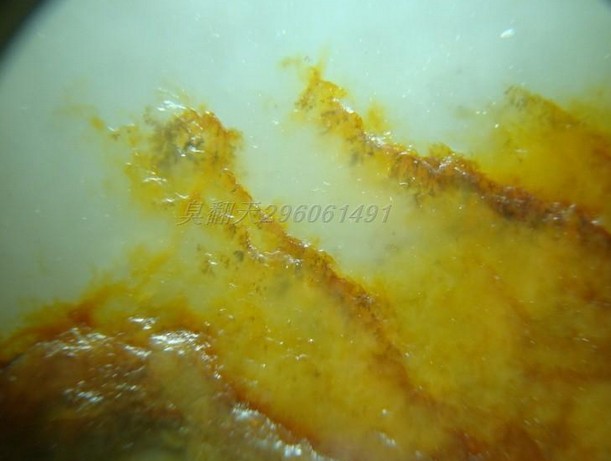 籽玉的表面上,一片颜色的存在,有的是慢慢过渡到颜色消失,有的是突然整体中断,这个颜色的边界就是色界。