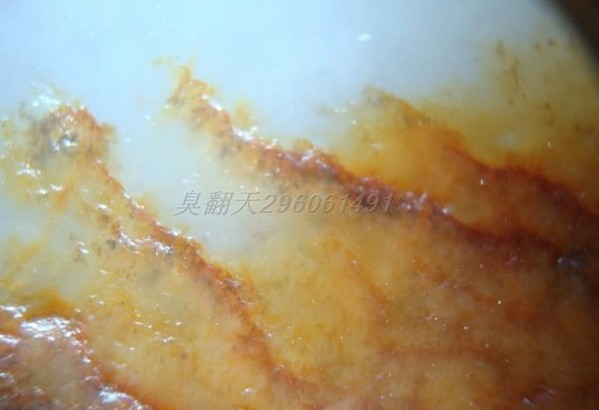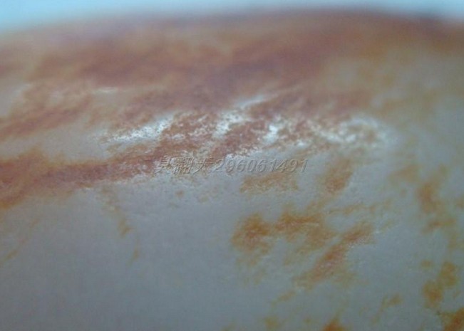 玉的表面颜色天然生长下,都是深入到肉质里面的,不管肉眼看到多深,你要理解为都进入了好几个毫米。根据时间、玉质……等等条件不同,肉眼看到的深度也有所不同,但其实都进去了。并且是亿万年慢慢的渗透……,柔和的插入……,淡淡的过渡……,光泽度持续的延伸……