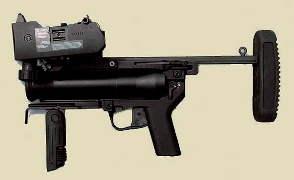 特点:该枪的伸缩式枪托也与其他枪的枪托不同,其贴腮板可以向右倾斜,这样可以方便射手戴着防毒面具进行贴腮瞄准。如果需要的话,伸缩式枪托还可以在没有任何专用工具的辅助下更换成带握把的固定式枪托。标准瞄准具是鬼环式的照门和片状准星,在机匣顶部设有导轨,这个导轨还可安装多种附件,例如激光指示器、夜视瞄准具等。全枪表面也作了亚光处理,耐腐蚀性极强。其近距离威力大、不用瞄准指向射击便能命中目标等优点都是其他枪械不能替代的。