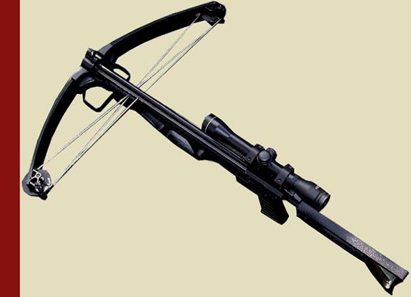 特点:配备军用4x32光学瞄准镜、1x30红外线瞄准器、机械瞄准器、高档专用弩包、杀伤力超强的145纯钢猎箭、NJ8032猎杀箭、校准箭各2支,8mm钢珠50粒。 拉力 43?59㎏,有效射程150m,重量5.5㎏,总长890mm。这虽然是冷兵器时代的装备,但在特种战场上仍有用武之地,如不能开枪的场合、或者要消灭单个敌人而又不能暴露自己的时候等等,弓弩都能发挥其冷兵器与无声的优点。另外它还可以发射锛钩。