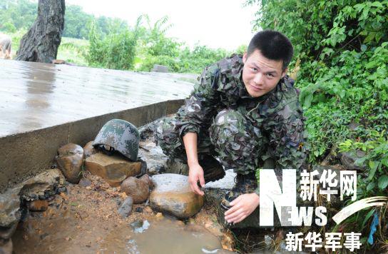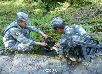 从“跨越—2009”中鞋子的变迁看解放军单兵装备建设——一名士兵在水沟旁清洗他的作战靴 。黎云 摄