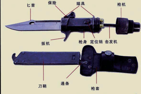 特点:QSB91式7.62mm4管匕首枪是近距离内歼敌的新式自卫武器,主要装备特种兵和公安特警。在捕俘及与敌格斗中能较好地隐蔽行动企图,以突然火力打击敌人。它是'隐形'武器的一种,既是匕首又是手枪,既能使用匕首刺杀敌人,也能发射枪弹杀伤近距离内有生目标,达到出其不意、以奇制胜的效果。特别是当我方行动企图暴露不能制敌时,或与敌格斗不能毙敌时,或敌人逃跑及'以一对多'时,均可迅速用枪弹射击,将敌制服或消灭。在执行反恐等特殊任务的时候匕首枪将是最后一道保障战士生命安全的屏障。