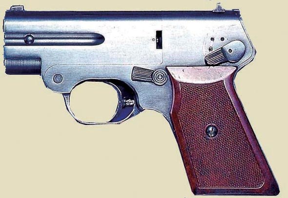 特点:最神秘的特种作战用手枪,该枪不装消声器,但可无声发射弹丸。外形像一支中型半自动手枪,配用上下双联的二根枪管,中间可折叠,结构非常简单,其基本设计思想与德国近代的2连发手枪相同。该枪采用AK47与AKM所使用的7.62×39毫米步枪弹弹头,完成任务后还可以起到迷惑对方的作用。