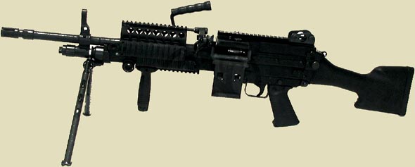 特点:这是一款特种部队专用,比目前美国陆军的通用机枪M240B轻30%,便于在复杂环境下由单兵携带的机枪,使用的是北约7.62×51毫米(弹径×弹长)标准弹。此枪问世后以轻便灵活、后坐力小、操作简单等优势获得了官兵们的认可。'海豹突击队'退役上士戴弗霍尔对它的评价是'易于操作和拆解','非常非常可靠'。