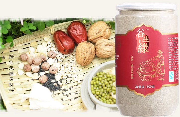 以养肝防衰,清热解毒功效为主的谷生缘山药绿豆百合粉,由山药、绿豆、百合护肝养肝三宝,搭配莲子、薏仁、红枣、黑芝麻、核桃、杏仁滋阴益气的食材,9种纯天然五谷原材料低温烘焙后新鲜研磨而成,不仅食用方便,粉质细腻更利于肠胃的吸收。