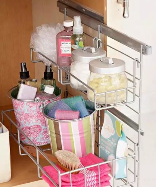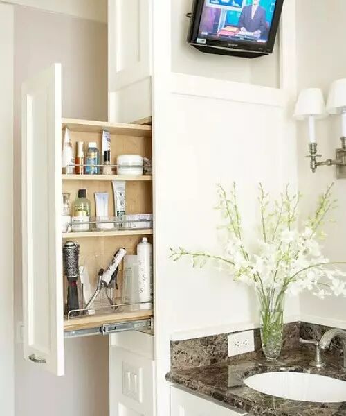 小小的空间容不下大刀阔斧的“改革”,那就安个架子挂在洗脸盆的上面吧。简单的设置就能完成基本用品的收纳,取用也十分便捷。