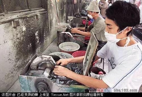 大批工人利用打磨机将切片后的玛瑙磨出天珠的形状