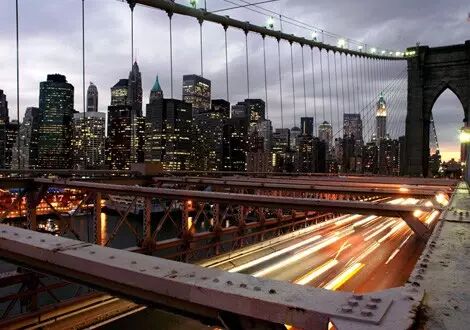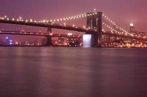 这张纽约布鲁克林大桥在2008年的9月拍摄,当时其中一个桥塔上安装了光照良好的人工瀑布。在低速快门下拍摄光线比较暗淡的主体,照片更加有趣迷人。