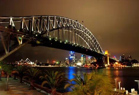 照亮的道路笔直斜线与著名的悉尼海港大桥弯曲的桥拱,成为将观赏者深深吸引到照片中的有力线条。大桥也是它下面显示的悉尼天际线的理想框架。