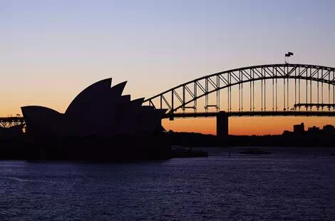 这些著名建筑的剪影如此独特,您可以立即认出它们是悉尼歌剧院和海港大桥。摄影师将相机设置成只曝光大桥正上方的天空,从而创造出此效果。