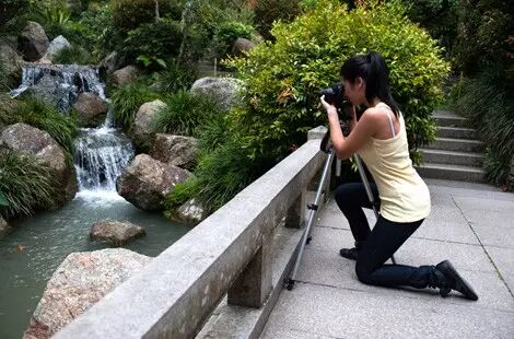 如果没有三脚架,最好是采取正确的相机握持姿势以最大程度地降低手的抖动。使双臂紧贴身体,当气呼出一半时按下快门键。但这通常只对快门速度低至1/15秒时有效。如果快门速度更低,则您必须使用三脚架或采用支撑技巧。